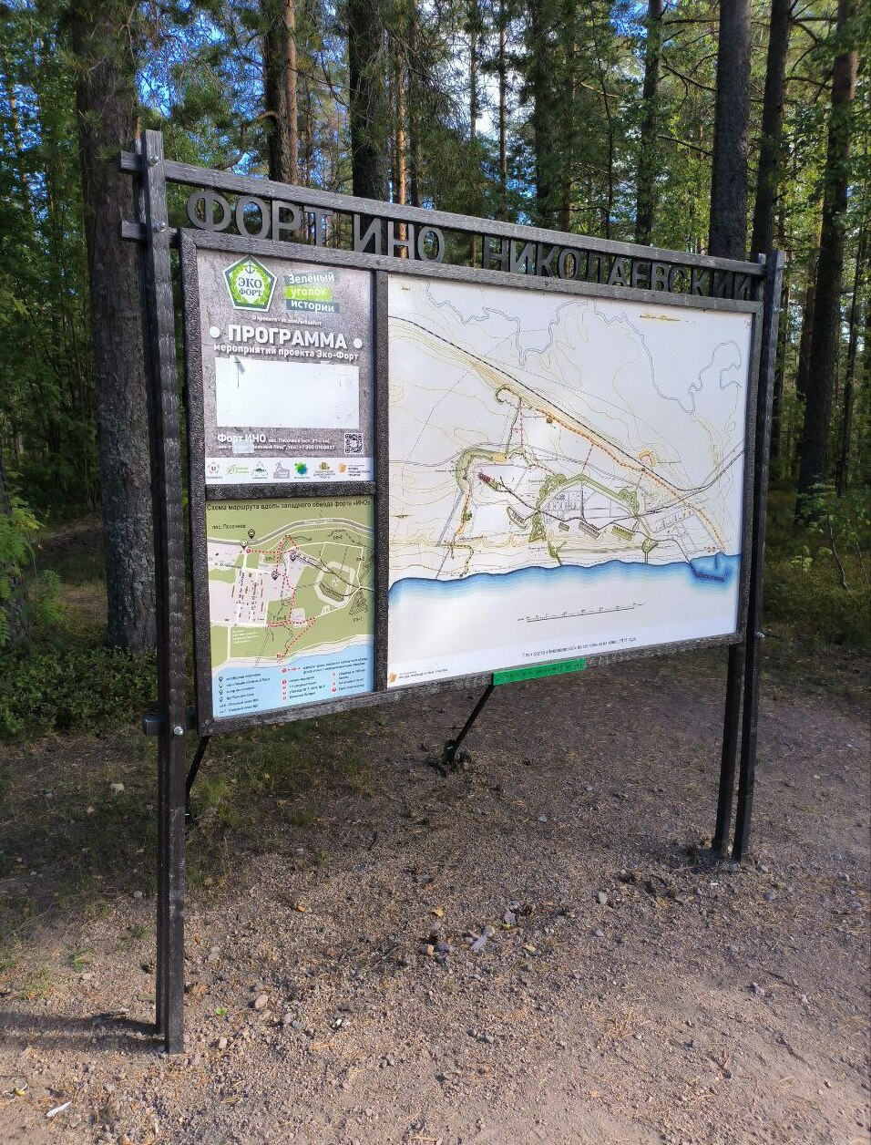Также, с 2023 года, благодаря работе волонтеров вы можете самостоятельно осмотреть часть объектов, которые были расчищены в рамках проекта «Экофорт» в 2022-2023 гг по маршруту западного обвода и понаблюдать за переменчивым Финским заливом у финальной точки маршрута - бетонного капонира. Стенд с обозначением маршрута расположен сразу на въезде. Стартовую экспозицию можно посмотреть в помещении «Зеленый Лещ».